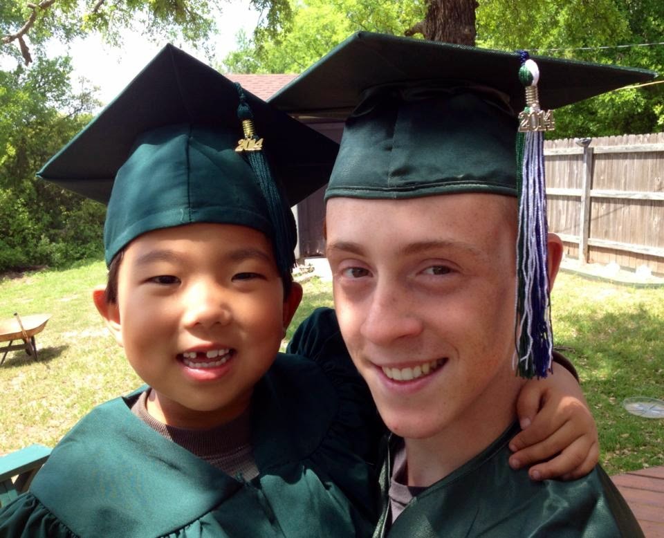 Friday was the day we've been talking about all year. We hosted a big family fajita supper at our house before the graduation ceremony. So fun having all the family together. The graduation ceremony was wonderful. There were 35 students. A small school is so sweet because the teachers and administrators truly know the kids well. A Christian school is even sweeter because all glory, praise, and thanks was given to Jesus. I'm not going to sugar coat anything, I cried like a baby. It was just an uncontrollable stream of tears watching the whole thing. Like yesterday I was holding my crazy toddler boy as he sucked his thumb and now he is truly an adult. The sweetest moment was when Mike gave Carter his diploma. What a rare treat for a father to do that. The ceremony ended with the most incredible admonition to the students from their favorite teacher. He told them they do not need to be famous. That true love is shown in caring for others, that the orphan and the widow are whom they must care for, and that all life is found in knowing Christ. A huge shout out to my sisters (Emily, Melody, and Katy) for making the senior table a lovely reflection and celebration of Carter. I have not one crafty bone in my body and they made it look awesome!