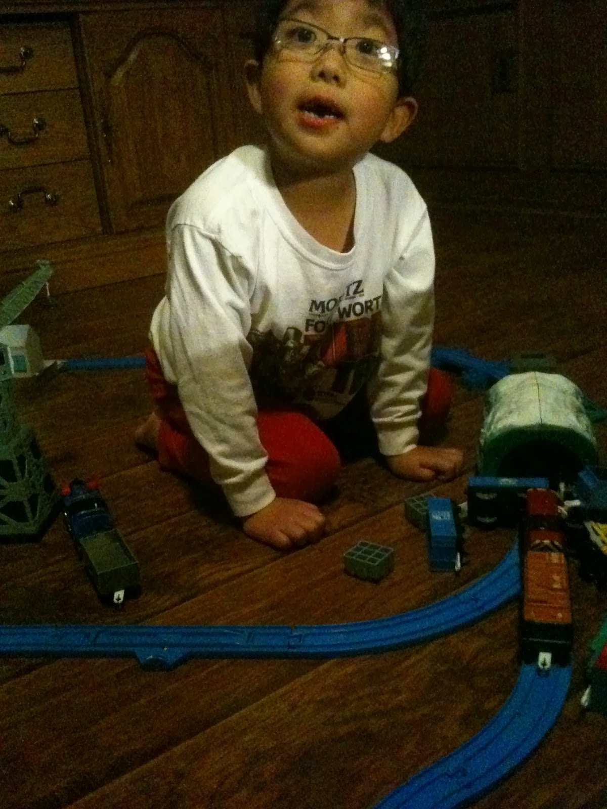 Aspen calls him). What does Hudsy do all the time?? Thomas the Tank Engine, of course. Look at his sheer joy.
